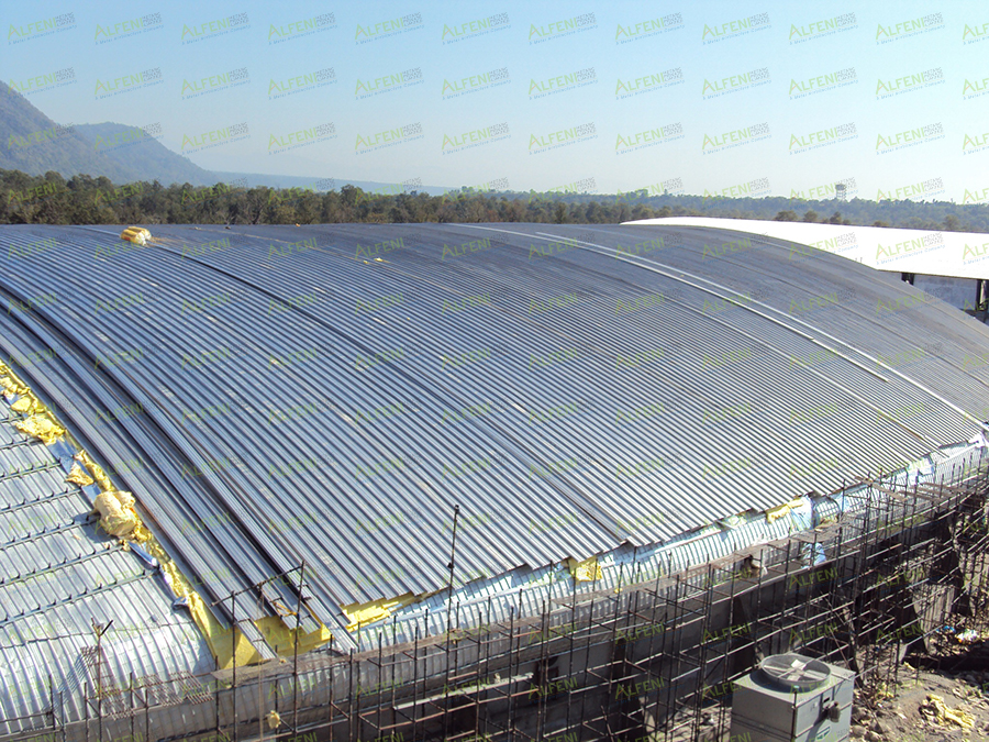 Alfeni offers Aluminium & ZINC standing seam roofing & Cladding systems. These sheets are available in cover widths of 300, 400 and 500 mm, providing a very cost effective way of finishing roofs and also allowing laying of the sheets to take place from both ends of the roof simultaneously. It also allows designers the freedom to choose the module width or even to mix widths on a single roof. The side laps of the panel feature a zip-up standing seam detail, which hooks over a series of halters, to provide a continuous weather tight roof without any through fixings. The product can be manufactured on or off-site to almost any length, which virtually eliminates the need for end laps.
